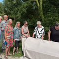 Op donderdagmiddag 19 juni om kwart over vier (nou vooruit, het werd iets later) vond de officiële onthulling plaats van een twintigtal nieuwe zitbankjes in Noord- en Zuid-Scharwoude. Daarvoor werd het bankje uitgekozen die in het Rijk der Duizend Eilanden aan de Reiger, nabij het Rootgesmolenpad symbool stond voor deze mijlpaal waar een drietal dames flink voor hebben geijverd.