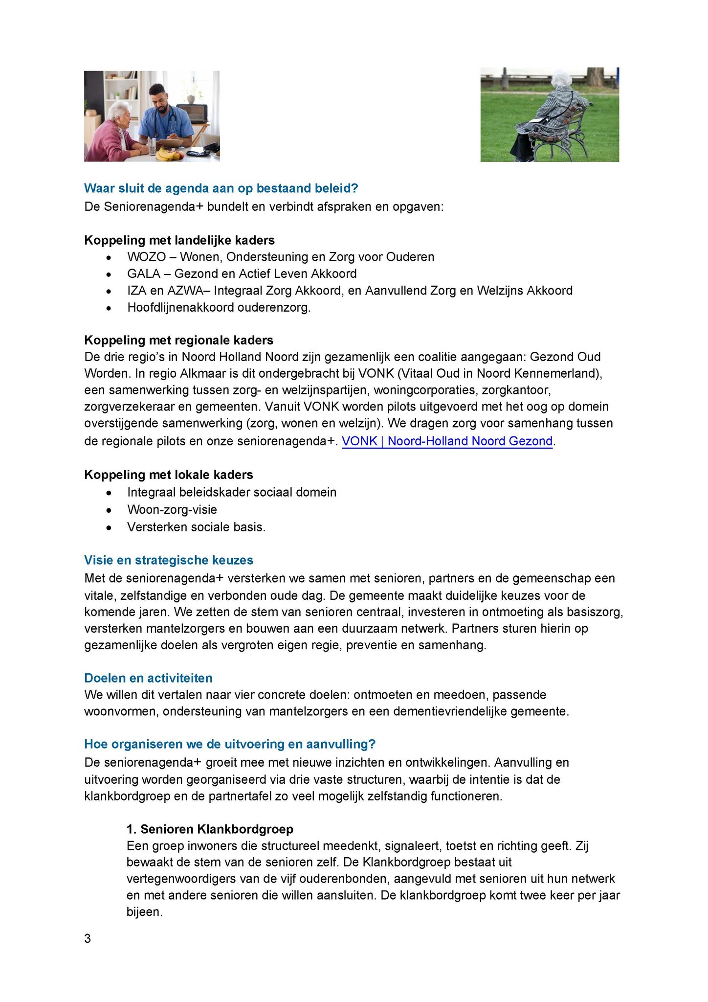De Seniorenagenda+ is geen nieuw beleid, maar een praktisch en agenderend overzicht van: