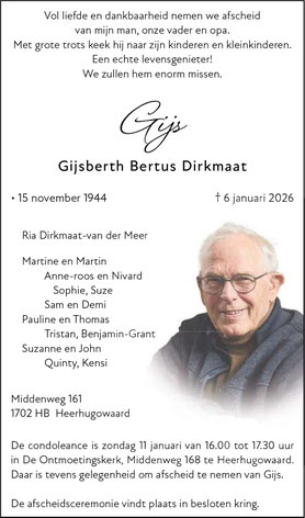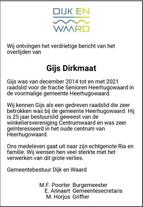 We waren en zijn er erg trots op dat Gijs steeds zoveel stemmen voor onze partij heeft gehaald. Gijs heeft veel betekend voor Senioren Heerhugowaard en Senioren Dijk en Waard. En voor de Ouderenpartij Noord-Holland, waarvan hij voorzitter was. Met zijn kennis van het verleden, zijn lokale kennis maar bovenal zijn positiviteit en zijn humor.